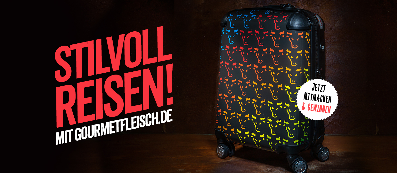 5. Gewinn: 3 x 1 Handgepäckkoffer im exklusiven Gourmetfleisch.de-Design. Gewinnspielende ist der 24.02.2020, 15:00 Uhr.